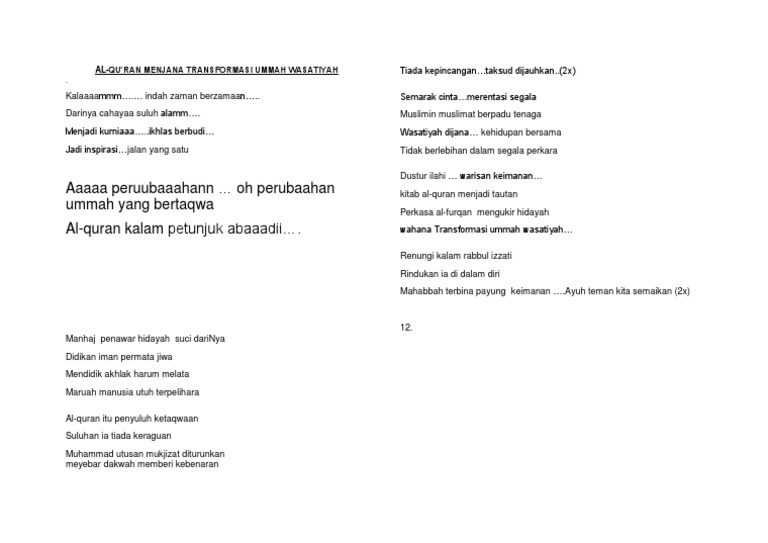 Festival Nasyid Negeri Selangor Lirik Lagu 1 2014 Pdf